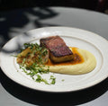 Leitão assado até à perfeição, de pele crocante, acompanhado de puré de batata trufado e maçã caramelizada que acrescenta um toque delicadamente doce.