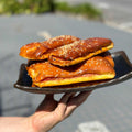 O nosso lanche, preparado artesanalmente, combina massa fofa e recheio saboroso.
