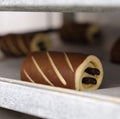Massa folhada artesanal, leve e estaladiça, recheada com chocolate de sabor intenso.