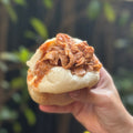 A bifana e o pão são enviados em separado para garantir frescura e a melhor experiência no momento de servir.