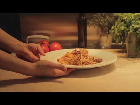 Carne à bolonhesa [rabadilha de bovino, polpa de tomate, tomate em cubos, vinho branco (sulfitos), cebola, bacon (soja e lactose), chouriço de carne (soja), azeite, sal, alho, manjericão, orégãos, pimenta preta e louro], massa spaghetti (glúten) e sal.