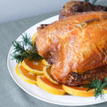 Peru Recheado de Natal bbgourmet, preparado de raiz pelas nossas chefes e refrigerado para que apenas tenha de finalizar no forno e servir. Um clássico de festa feito artesanalmente para brilhar na sua mesa. A carne mantém-se suculenta e macia, enquanto o recheio – bacon, caldo de galinha, limão, miolo de pão, azeitonas pretas e salsa – oferece um equilíbrio de aromas intensos e frescos. Um prato festivo que leva à sua mesa o verdadeiro sabor da tradição, pronto para surpreender família e convidados.